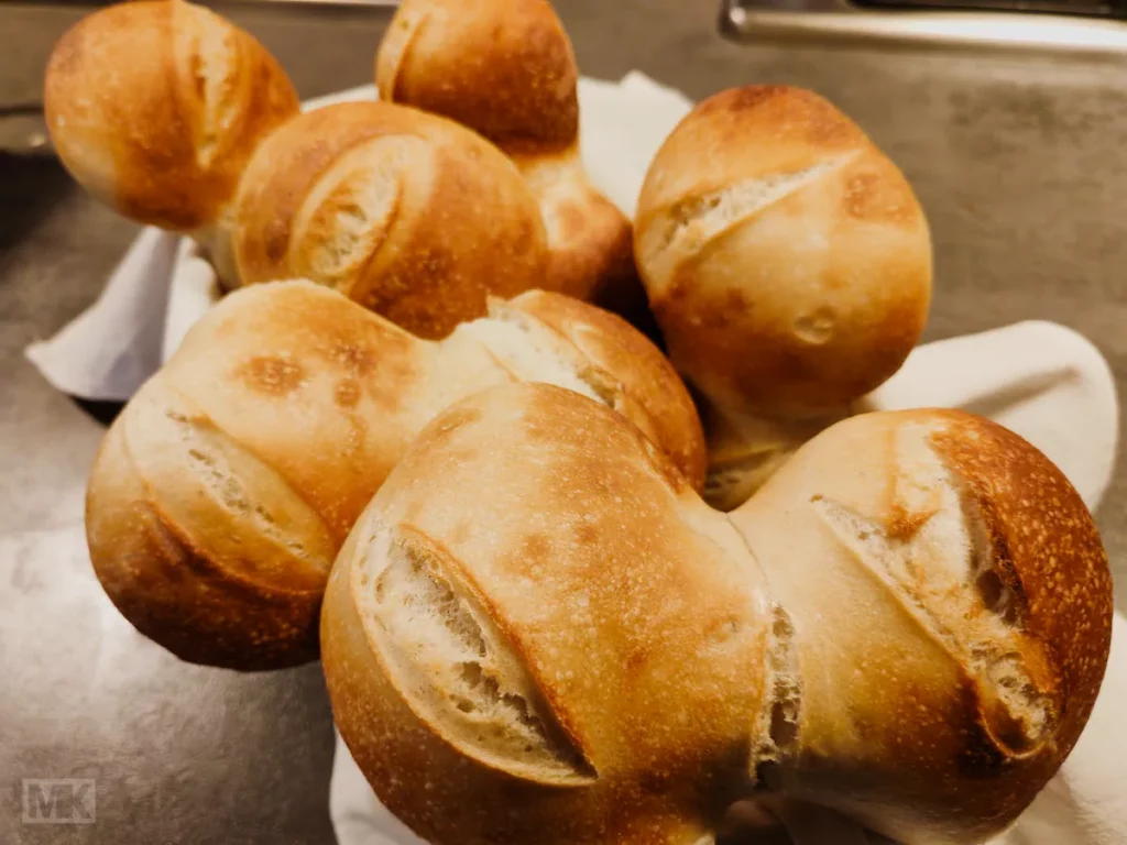Ich hole den Brötchenteig aus seinem kühlen Nachtlager. Ein paar Minuten später liegen, perfekt rundgeschliffen, sechs Doppelte zur Stückgare, und der Backofen wird auf Temperatur gebracht. Das alte DDR-Rezept nach Bäcker Süpke hat sich schon so oft bewährt.